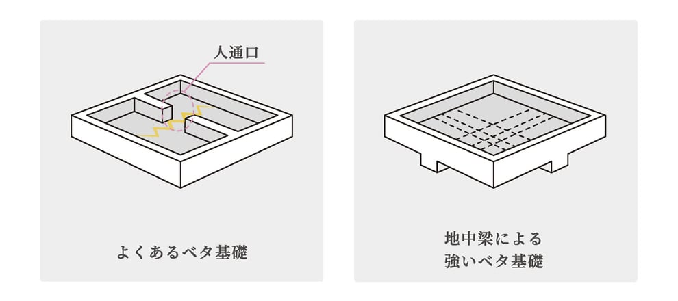 断熱の家では、構造計算に基づく丈夫な基礎形式である地中梁工法によるベタ基礎を採用。