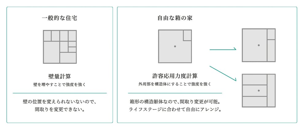生活様式で間取りは変わるもの。地震に負けないスケルトンに、変化するインフィルでなくてはならないのです。